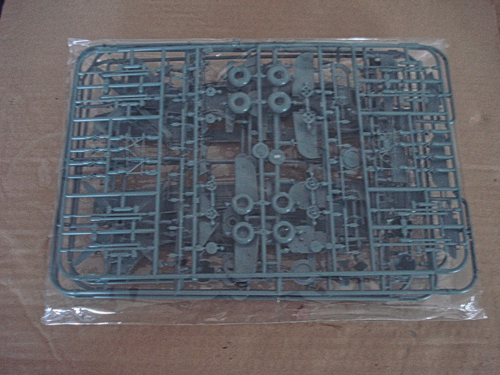 Dès l’ouverture de la boîte on se rend tout de suite compte de la qualité du kit qui comprend une centaine de pièces en plastique gris clair finement gravées permettant de réaliser une maquette très détaillée.