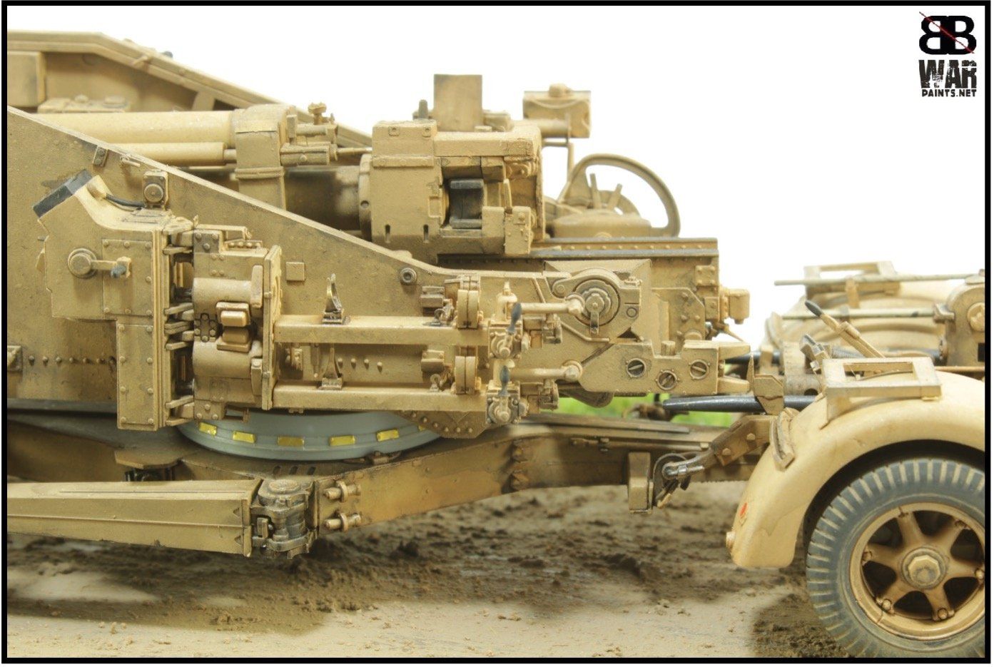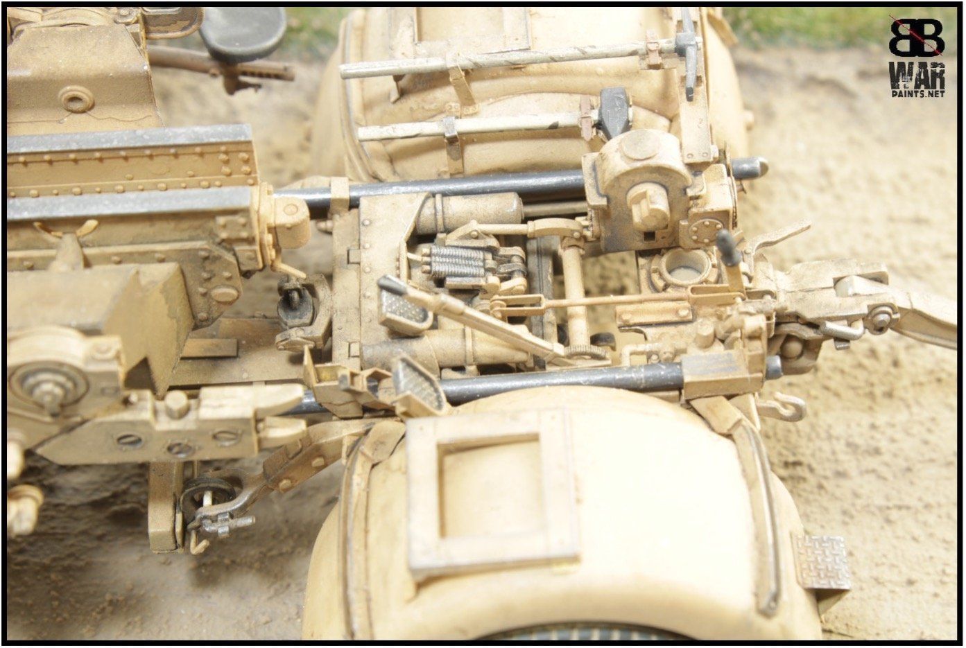 Le modèle est peint version Afrika Korps (Sauf la couronne, c’est un essai). Mais déjà il est clair que la partie réglage des fusées est superbe de détail.