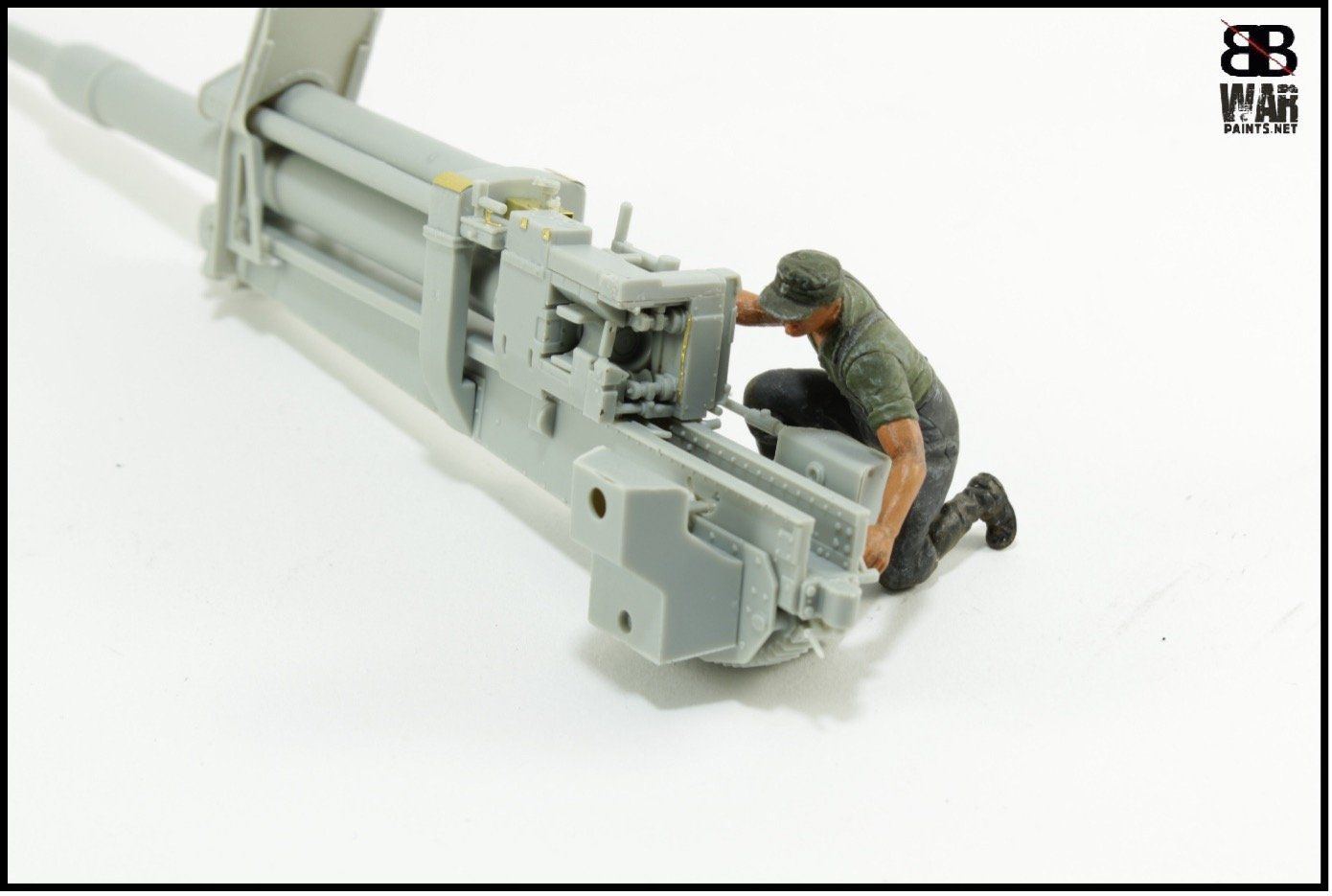 Le modèle est peint version Afrika Korps (Sauf la couronne, c’est un essai). Mais déjà il est clair que la partie réglage des fusées est superbe de détail.